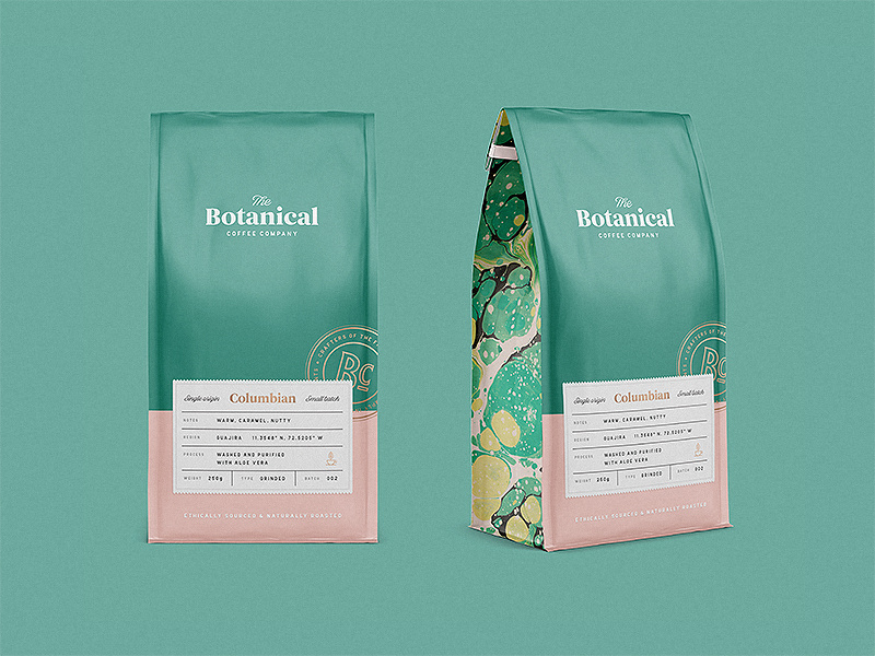 This coffee packaging is so bright and captivating, yet still has colors that are easy on the eyes. When choosing your color palette, you need to be sure that you’re choosing colors that soothe and colors that people want to look at. And of course, brand colors that represent you and that your audience will enjoy.