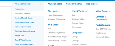 The design itself is fantastic and works in unison with Walmart’s branding. Links are small but not too small, hover effects fit into the menu, and everything just looks like it’s in the right place.