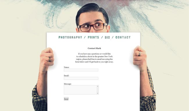 A photographer’s website in contre-jour has its contact form all the same.