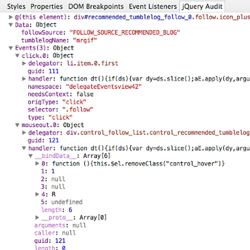 To get this in your browser just visit the Chrome Web Store and install jQuery Audit for free today!