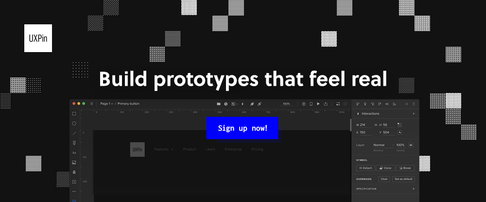 UXPin is a state-of-the-art prototyping and collaborative tool for UX and UI design teams. It has two versions available, a browser-based version and a desktop app. UXPin also provides features powerful and efficient real-time collaboration functionalities that allow teams to work in real time and in context from anywhere.
